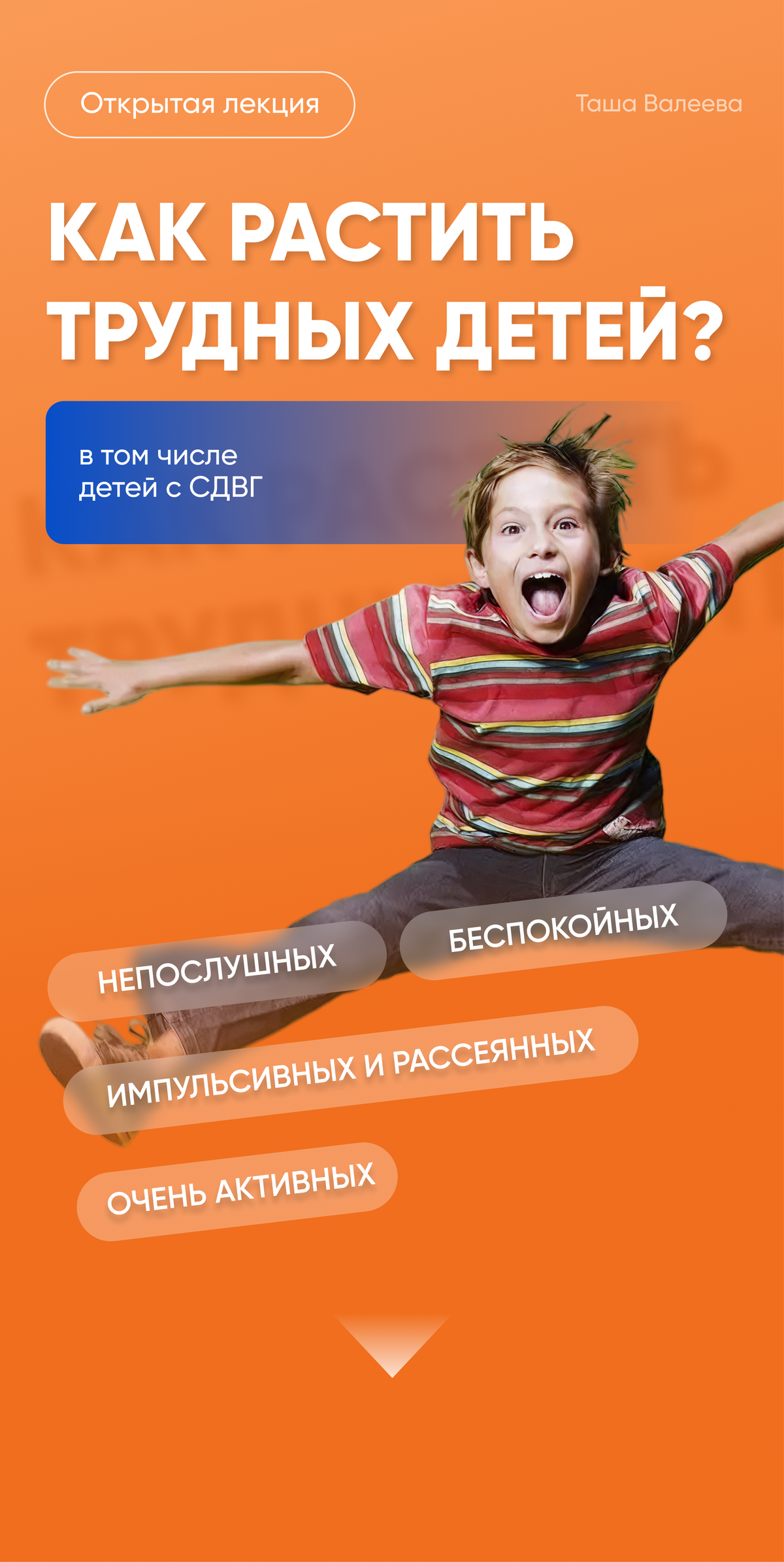 - Мы будем разбирать принципы, которые являются основой хорошей жизни с любым ребенком, особенно с проблемным, независимо от наличия или отсутствия у него СДВГ